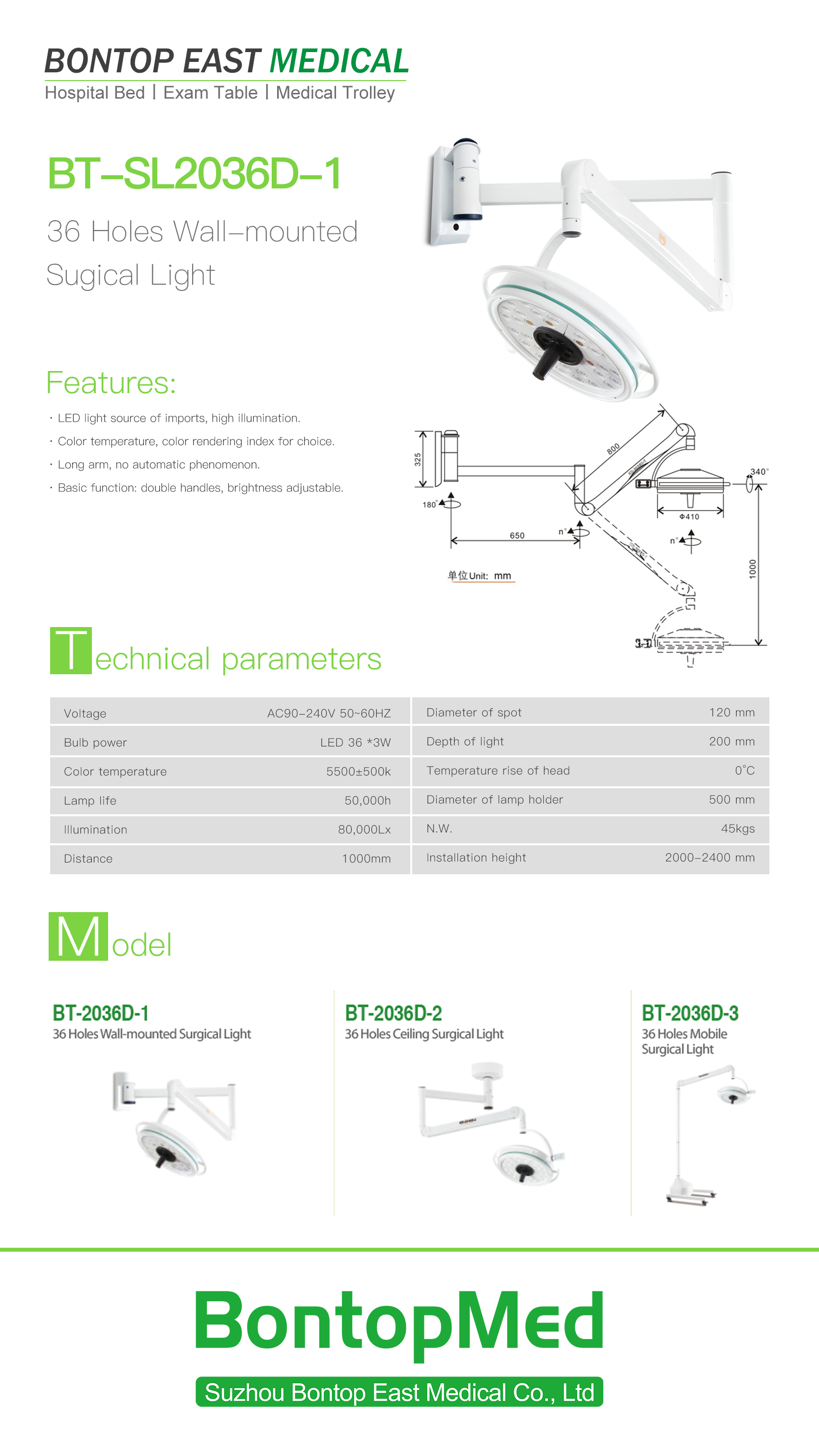 The lamp can be placed on the wall when not in use. Doesn't take up space! Application fields: medical treatment: surgical clinic; oral cavity; plastic surgery; operating room; pet medical treatment