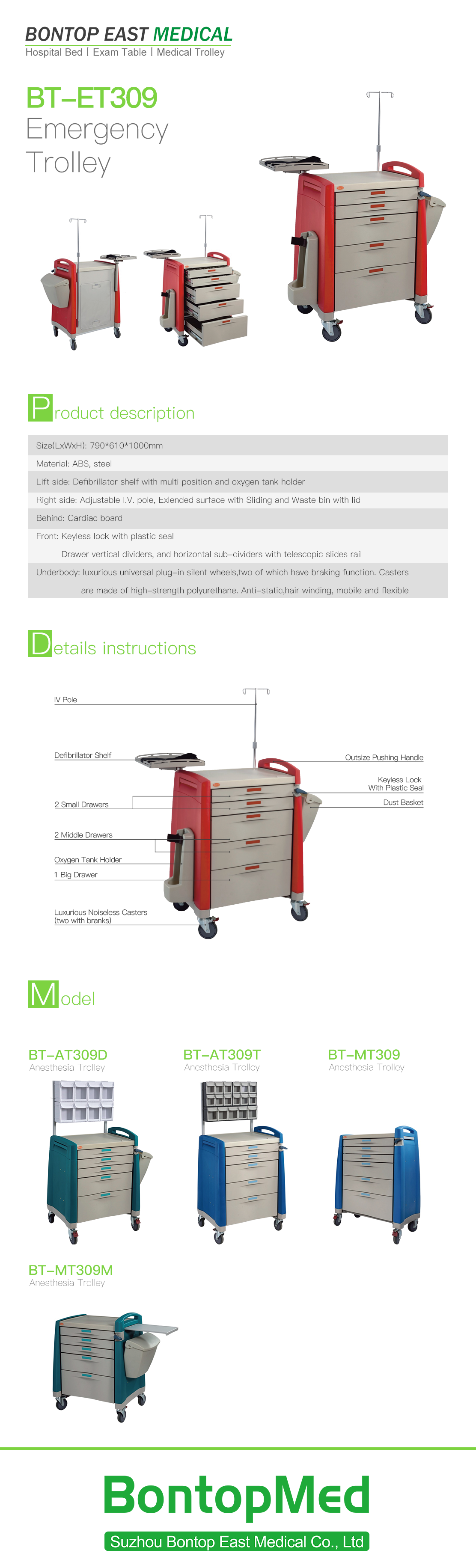 | Right side | Adjustable I.V. pole, Exlended surface with Sliding and Waste bin with lid |