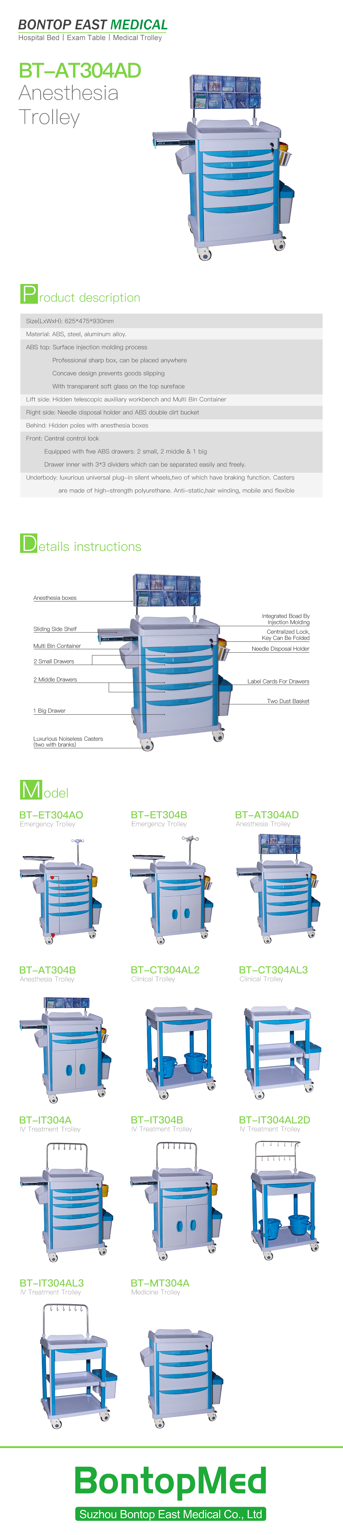 | Right Side | Basket partition, can set hand-washing liquid, scissors, two-liter sharps box, ABS double dirt bucket; |