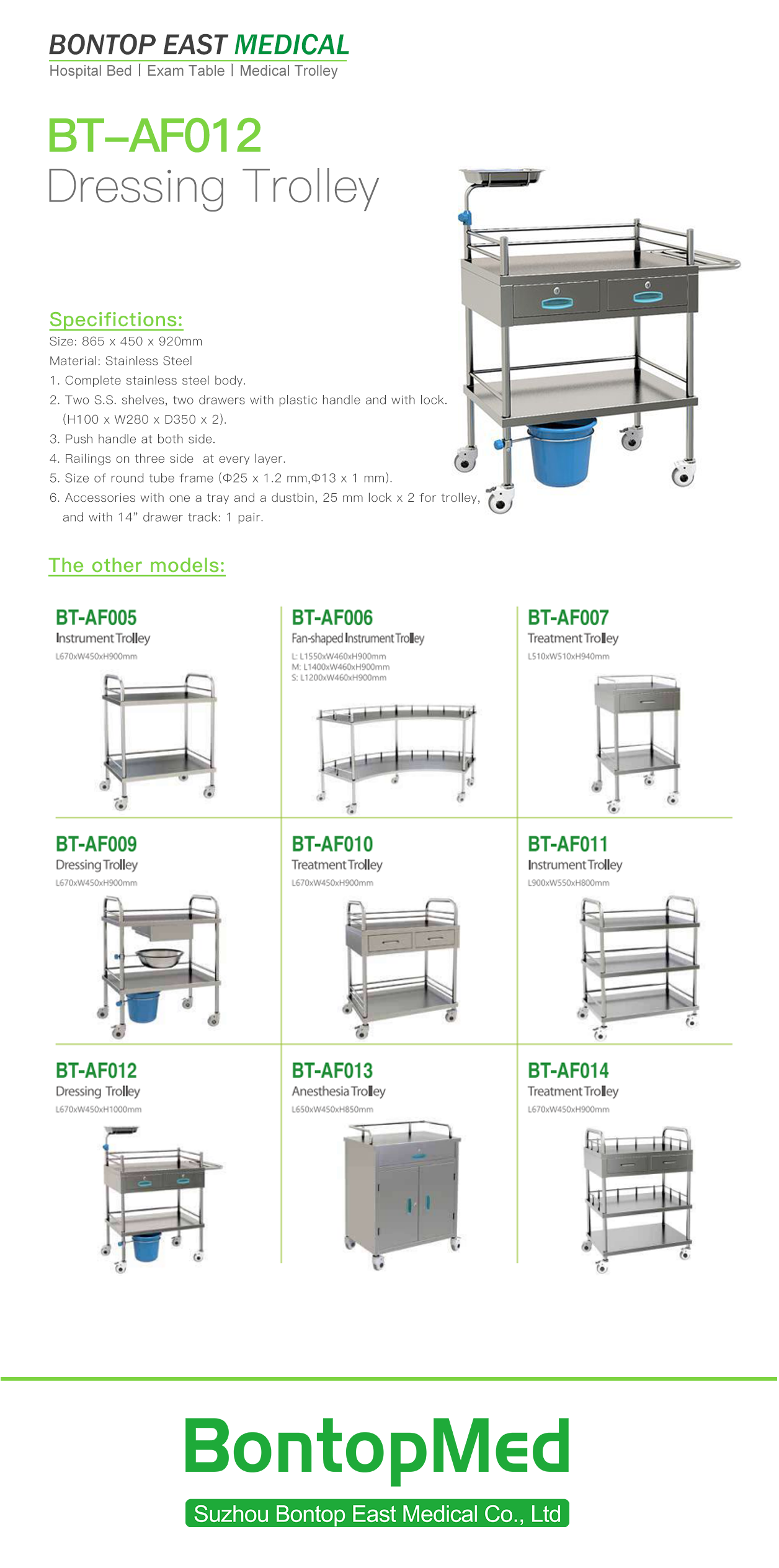 • Accessories : with one a tray and a dustbin, 2.5 cm lock x 2 for trolley, and with 14" drawer track: 1 pair